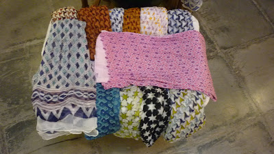 Différents modèles de couvre-lits, taies d'oreiller, nappes et sarongs
